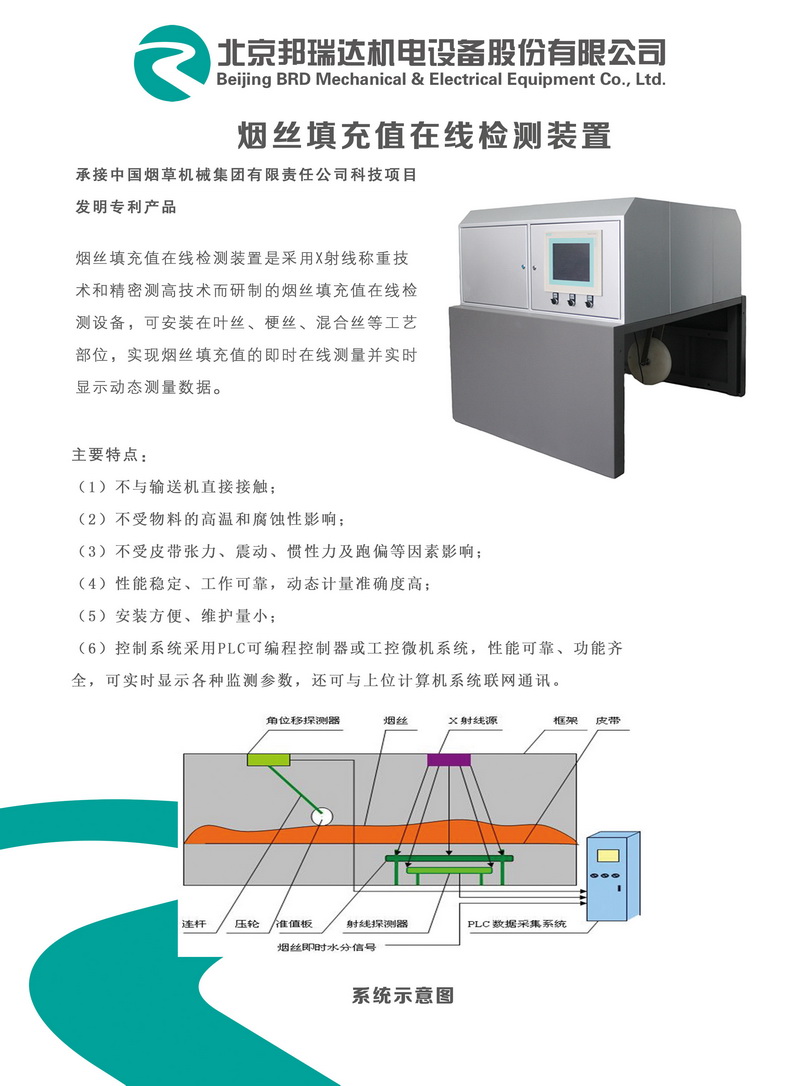 | 煙絲填充值在線檢測裝置介紹資料 | |