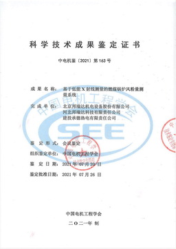 2021年7月20日,中國電機工程學(xué)會組織召開了該產(chǎn)品的技術(shù)鑒定會,鑒定委員會認(rèn)為:項目成果攻克了燃煤鍋爐風(fēng)粉量在線精準(zhǔn)測量的重大難題,為煤粉燃燒鍋爐均衡燃燒控制、低負(fù)荷穩(wěn)定燃燒和變負(fù)荷靈活運行提供了重要技術(shù)支撐,具有良好的應(yīng)用前景和社會經(jīng)濟效益。整體技術(shù)居國際領(lǐng)先水平。