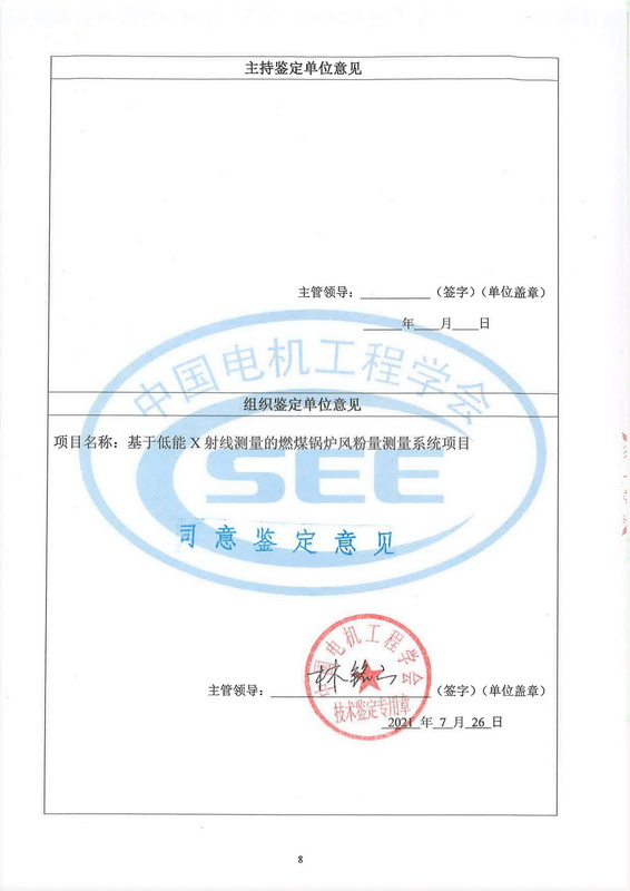 2021年7月20日,中國(guó)電機(jī)工程學(xué)會(huì)在北京組織召開(kāi)了“基于低能X射線(xiàn)測(cè)量的燃煤鍋爐風(fēng)粉量測(cè)量系統(tǒng)”項(xiàng)目技術(shù)鑒定會(huì)。